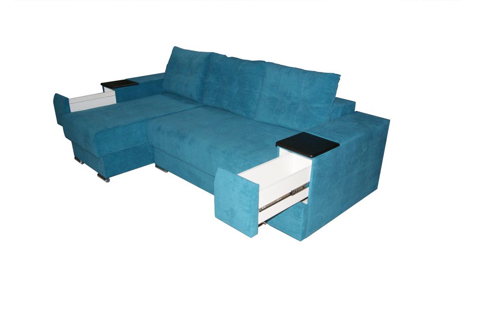 Угловой диван. Независимый пружинный блок. Два больших ящика для белья. В подлокотниках также есть ящики.